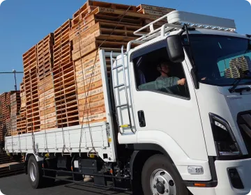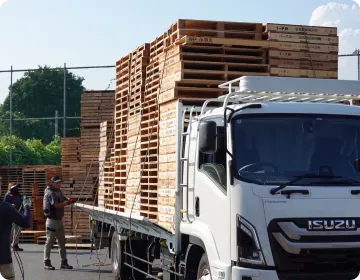 仕分けられた製紙パレットをトラックに積み、製紙メーカーに返却します。
