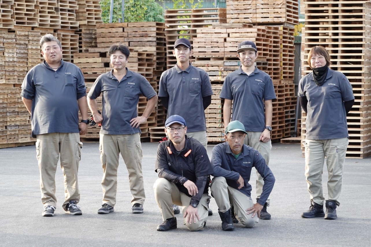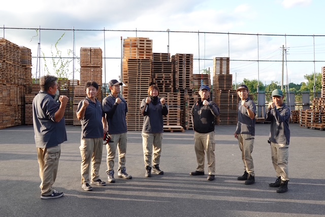 回収された製紙パレットを仕分けます。