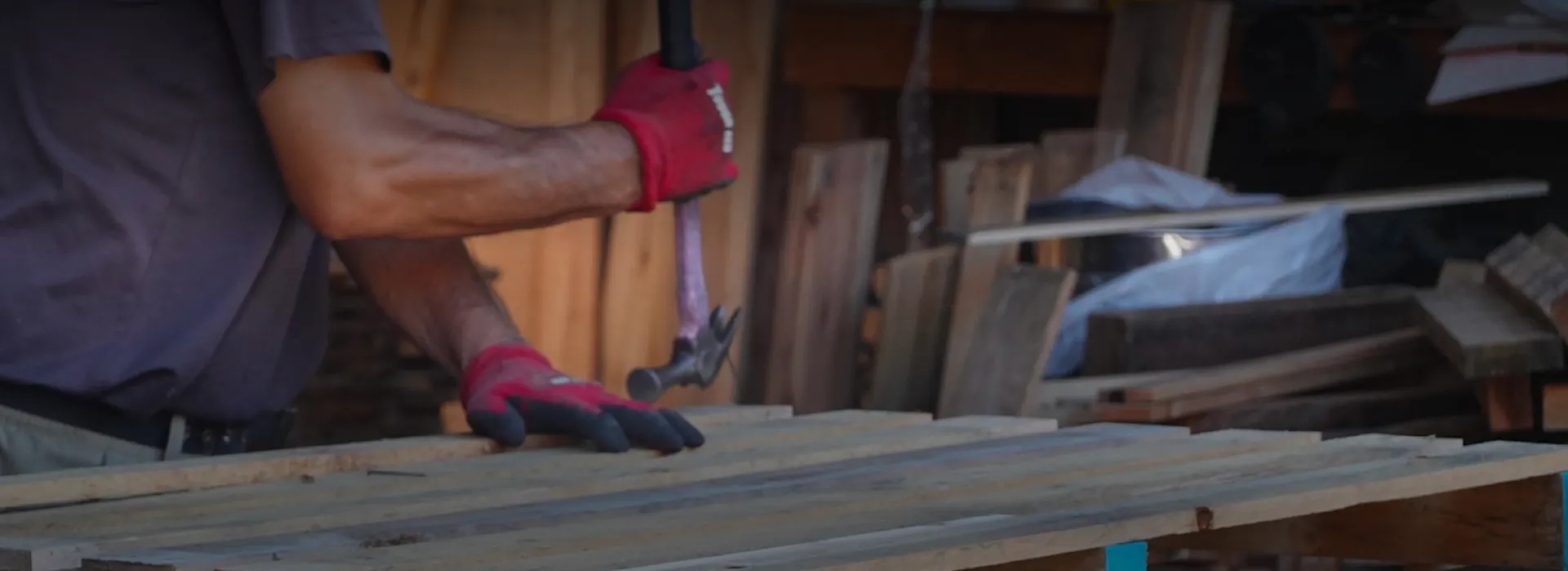回収された製紙パレットを仕分けます。